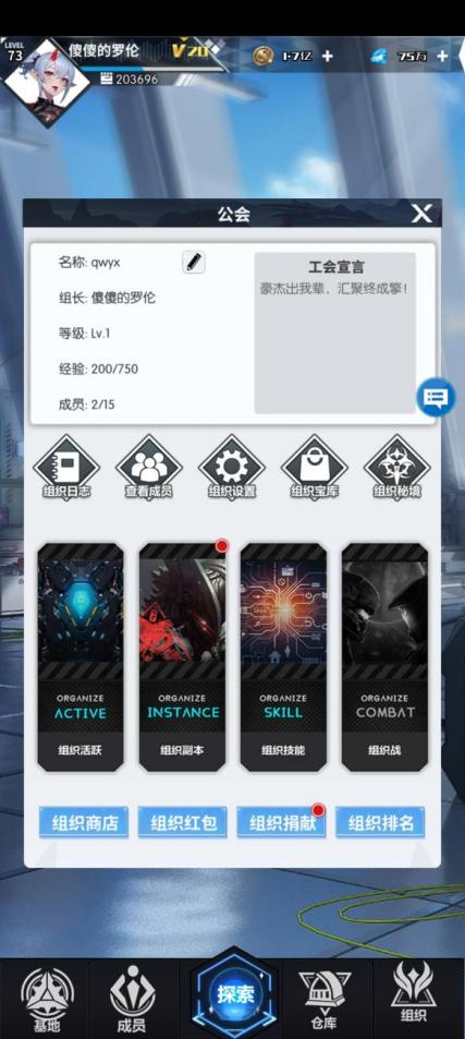 系統(tǒng)介紹:冒險家加入組織后,參加組織副本、組織戰(zhàn)、組織秘境等活動獲取資源,通過組織技能去提升英雄養(yǎng)成。
