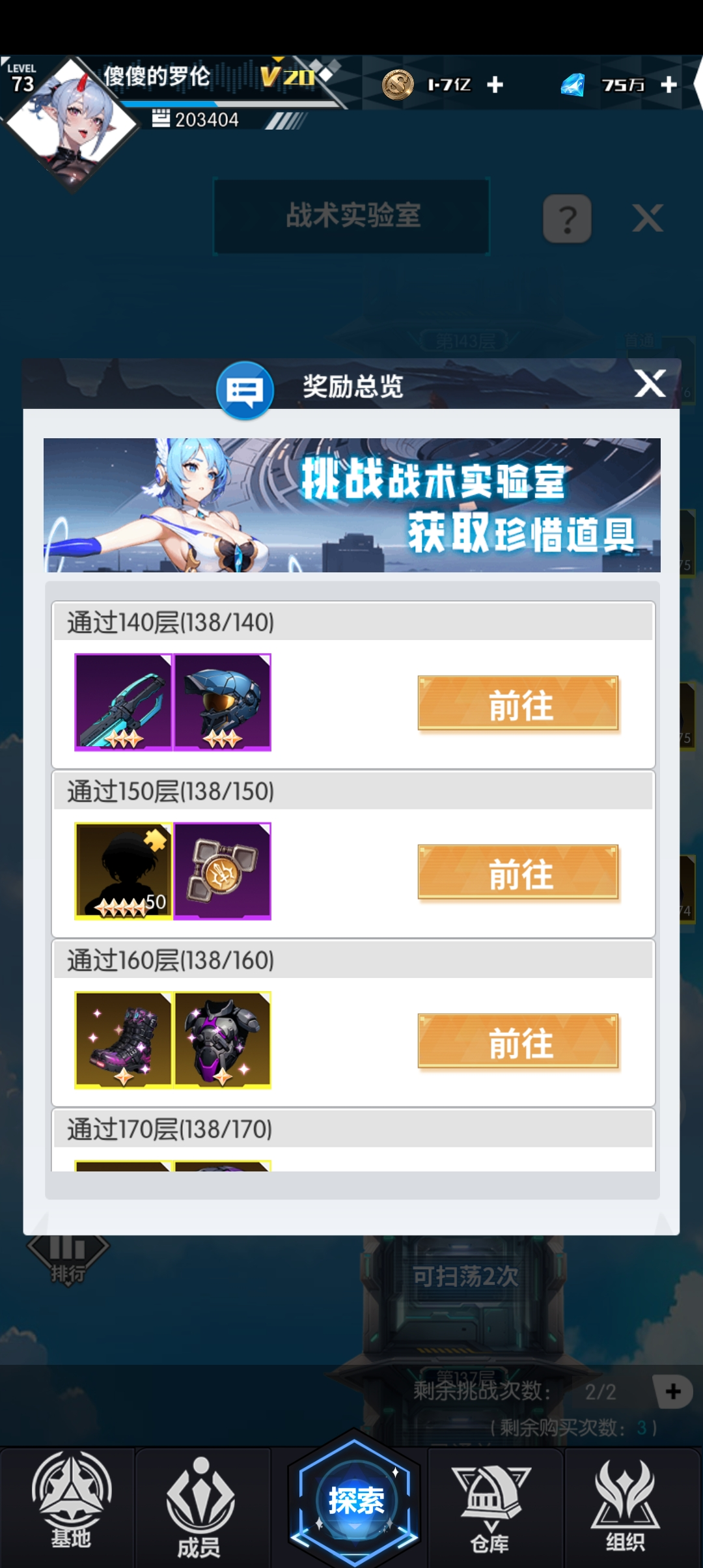 系統(tǒng)介紹:首通每層實驗室均可獲得元石、金幣及英雄精英,通過達標層數可獲得額外達標獎勵。