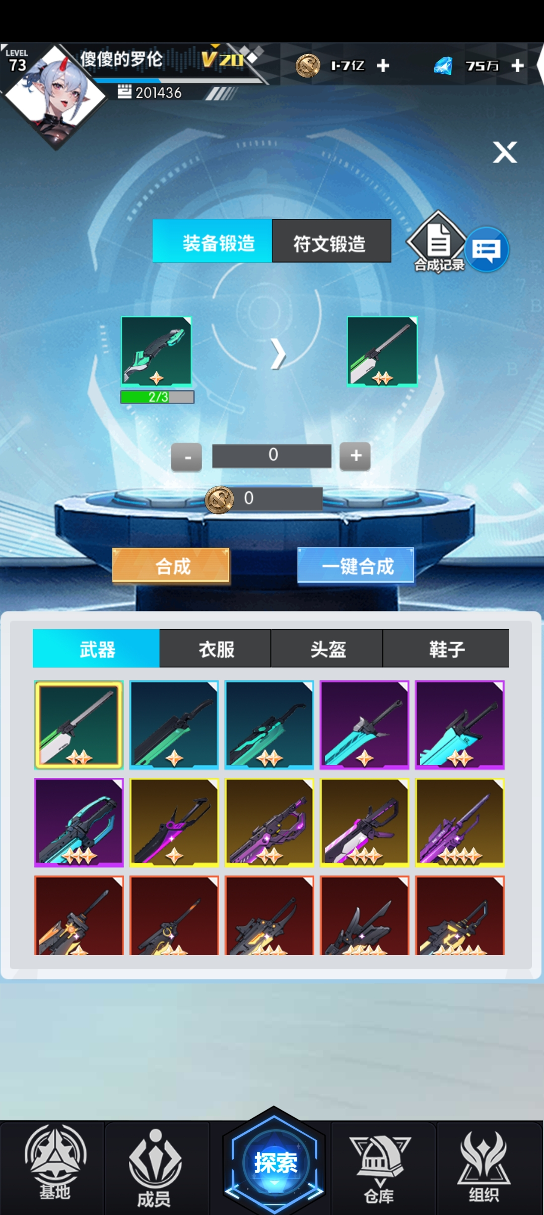 裝備主要通過掛機、通關獎勵及商店獲取,低品質可通過黑盒機床合成高品質裝備;