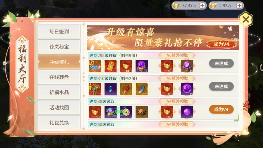 3、簽到、沖級贈豪禮、在線轉(zhuǎn)盤。超帥翅膀、頂級時裝、超值元寶卡通通可以拿下